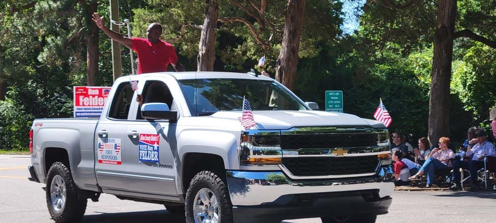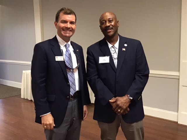 Ron congratulating Jim Darley after being sworn in as Mayor of Perry.