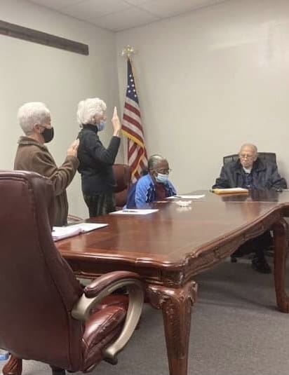 Perry Councilwomen Annie Clyde Williams and Mary Williams being sworn on there re-election